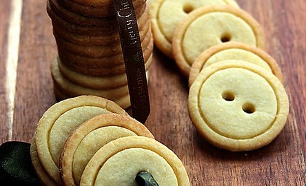 You need a shortbread (butter cookie) recipe, two biscuit cutters (one slightly smaller than the other), and a drinking straw (to make the holes).