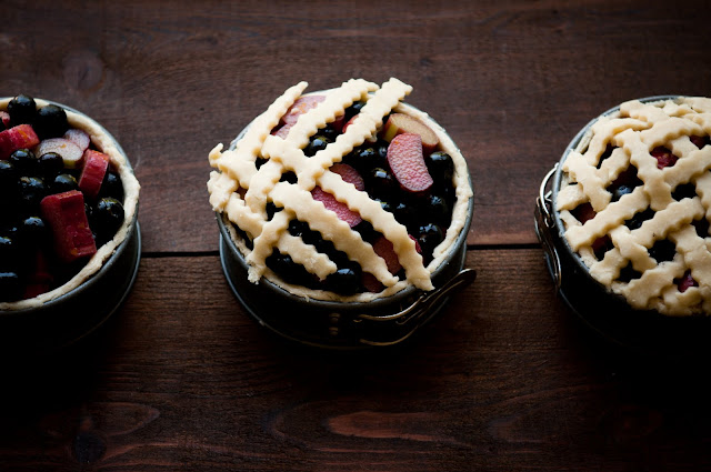 10. Bake for 400 degrees F for about 45 minutes. If the tops start to get brown, around 30 minutes, place a layer of foil over the pies and continue to bake until the rhubarb is cooked through.