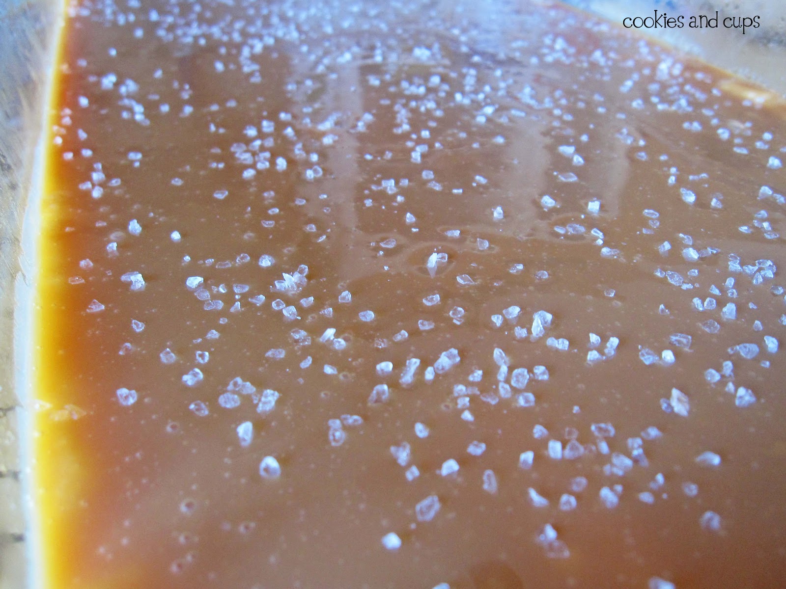 Pour the caramel filling over the crust. If you are going to salt the caramel sprinkle it on caramel layer now.