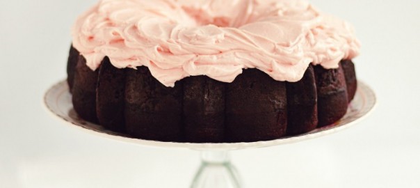 Dark Chocolate Chiffon Cake + Fluffy Rosewater Frosting