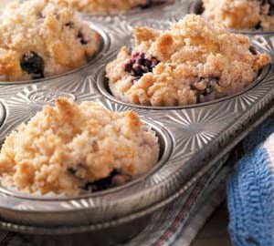 2 tablespoons flour + 1 tablespoon softened butter + 1/4 cup granulated sugar. Mix together until crumbly and sprinkle on top of muffins before baking. Via thesmallthingsblog.com