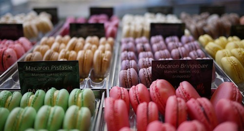 2 Macaron cookies in a box. Looks like the bottom and top of the cookies are a different shade to make them a little more exciting. Link